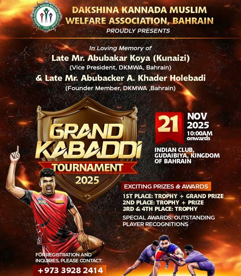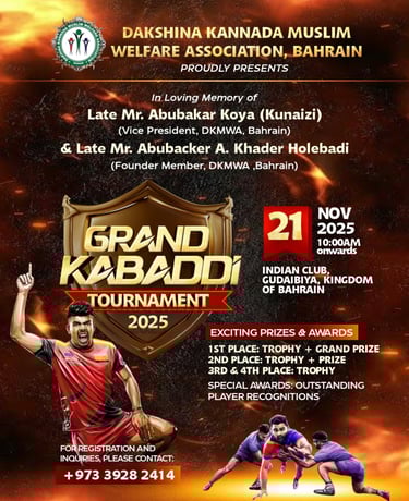 Grand Kabaddi organized & managed by Kabaddi Committee on 21st Nov 2025 at India Club, Manama