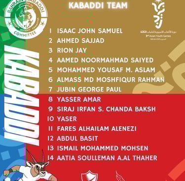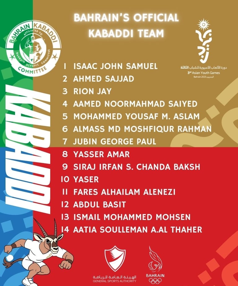 Bahrain marked a historic milestone by introducing Kabaddi for the first time at the 3rd Asian Youth Games.