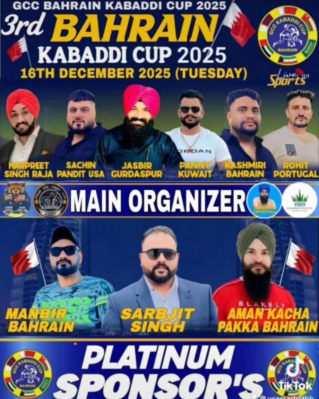 3rd GCC Kabaddi Cup Bahrain on 16th Dec 2025 at Salmabad, Kingdom of Bahrain